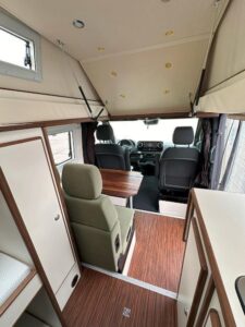 Parmi les atouts à mettre au crédit des camper-vans CS-Reisemobile, la qualité de fabrication est sans doute le point le plus notable. Les meubles sont ici conçus en contreplaqué marine à 7 plis de 15 mm et recouverts d’un stratifié HPL. L’assemblage monobloc et les contours en bois massifs garantissent ici la solidité de l’ameublement. Le fourgon est par ailleurs isolé par une mousse Xtrem Isolator et un capitonnage épais et facile d’entretien.