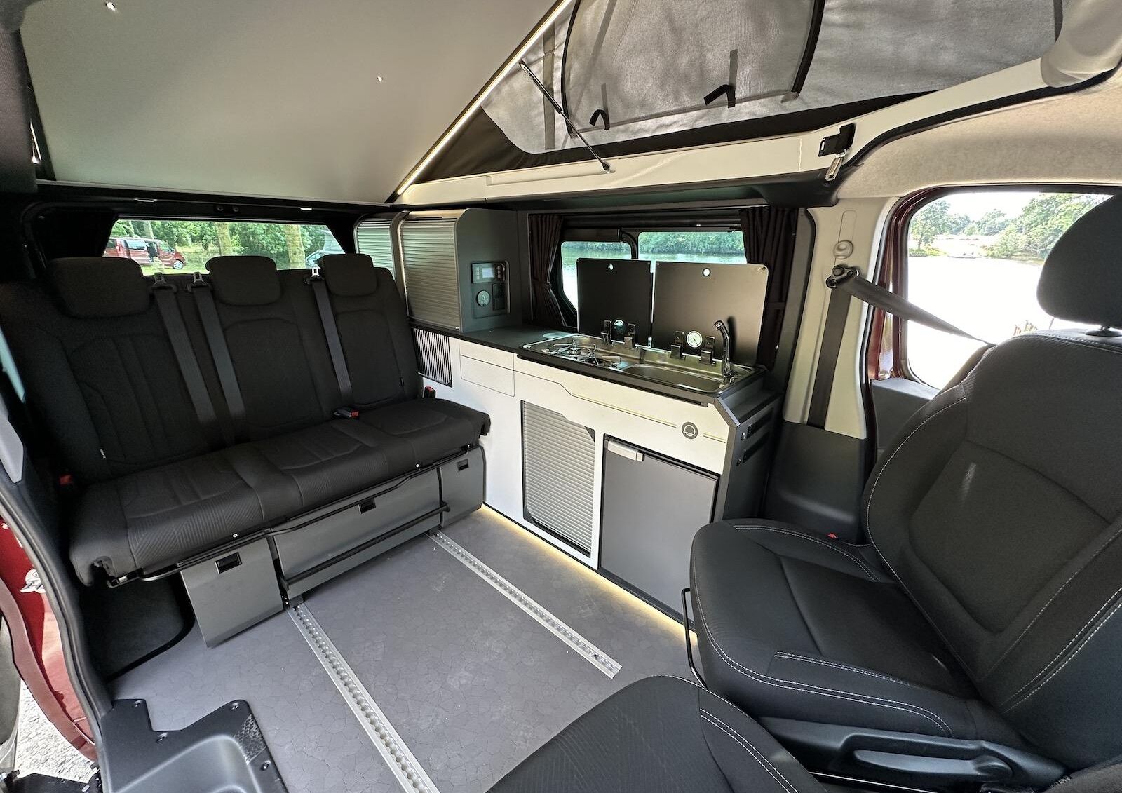 - Une découpe sur le flanc du meuble cuisine, derrière le siège conducteur, sert désormais de point d’appui pour accéder au lit de toit.