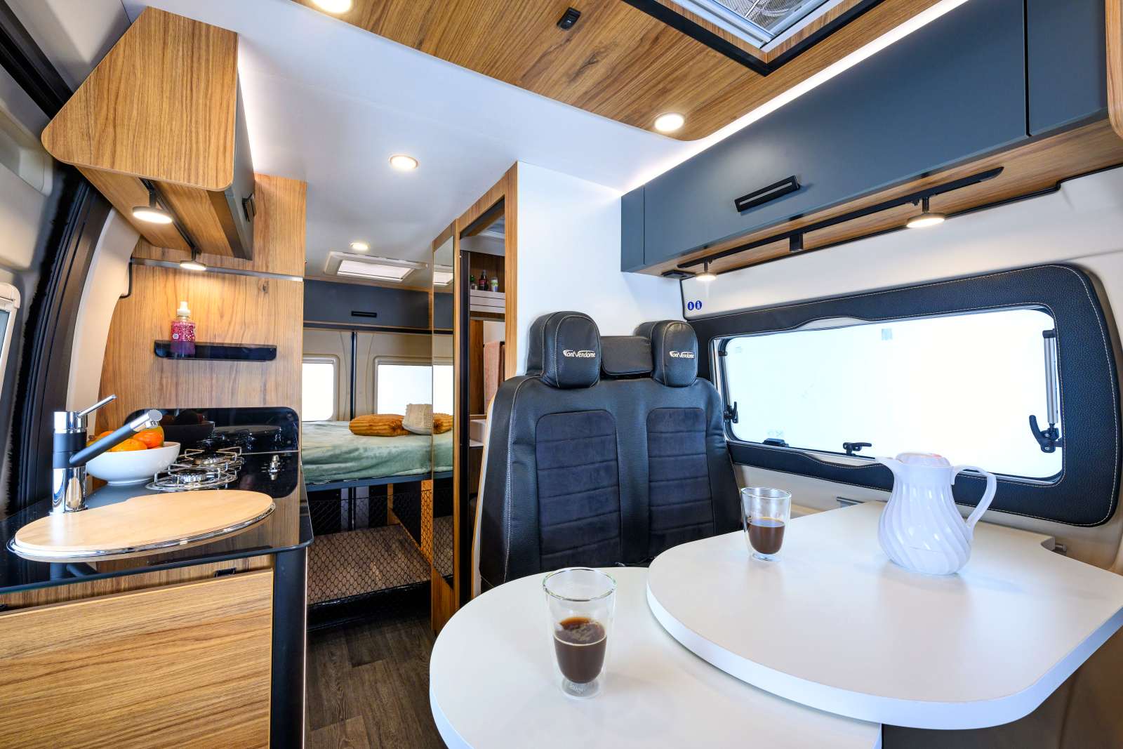 A l’intérieur, on note aussi quelques changements. A commencer par l’ingénieuse salle de bains 3-en-1, (avec WC coulissant, lavabo escamotable, et paroi qui pivote), dont la cloison de douche a été améliorée afin d’offrir plus d’espace au niveau des épaules. La Série S inaugure une table de dinette avec un nouveau rail qui facilite son changement de position. Les trois modèles profitent de la nouvelle soute aux espaces de rangements optimisés, et dont les portes coulissantes facilitent l’accès, également d’un banquette avec Isofix qui héberge rangement et chauffage.