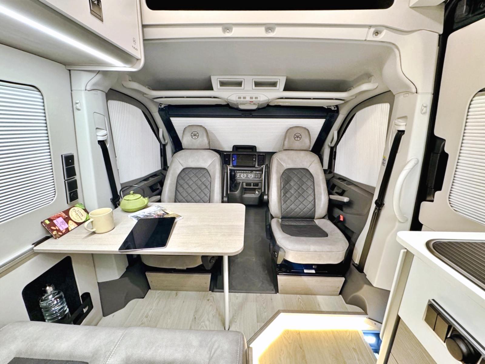 L’aménagement intérieur n’est pas le seul atout de ce Xpace 600. Greffé au MAN TGE il profite d’un porteur réputé pour sa sécurité, sa performance et son confort sur la route. De surcroit, il est ici proposé en transmission intégrale avec boite automatique 8 vitesses et motorisation 180 ch, de série. Furgok ne lésine pas non plus sur les équipements du porteur : nombreuses ADAS, feux Led, clim auto, caméra de recul, 4 haut-parleurs, volant multifonction cuir, parebrise chauffant, sièges chauffants, kit crevaison, frein électrique, etc. En 3,5 t et 4 places carte grise, le Xpace 600 sur MAN TGE 4×4 est affiché à partir de 109.700 €.
