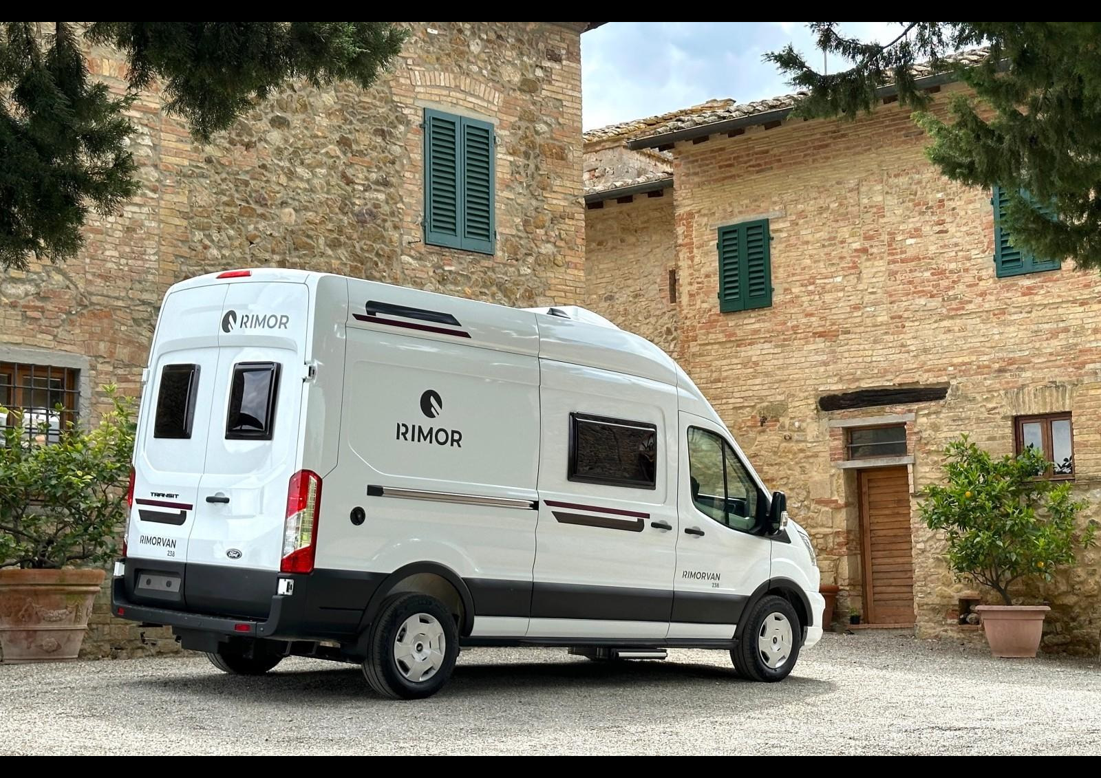 Aux côtés de sa gamme Horus sur Fiat Ducato, le fabricant généraliste du groupe Trigano enrichit son offre en fourgons aménagés d’une première proposition sur le Ford Transit 2T. Dans un format intermédiaire (5,98 m) et une hauteur relativement importante (2,80 m), le Rimor Van 238 adopte une implantation conventionnelle avec lit transversal arrière, salon avant, bloc cuisine et salle d’eau en partie centrale.