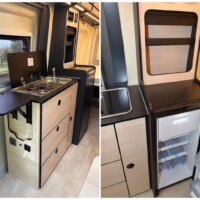 💶 Équipements en option : chauffage sur diesel, batterie supplémentaire, housses de sièges cabine coordonnées au tissu de banquette, barre d’éclairage extérieur, porte-vélos, support TV, moustiquaire de porte latérale, etc.