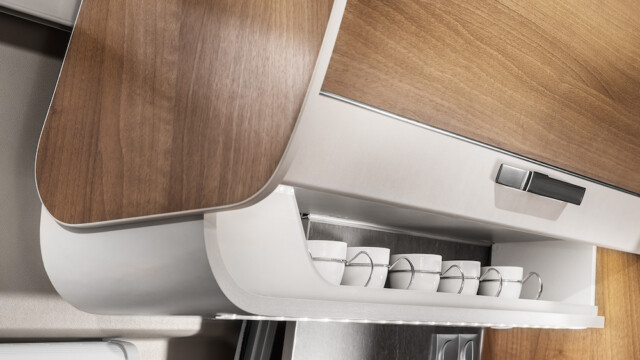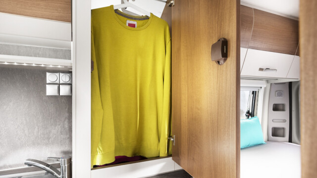- De belles finitions : ouverture à 100% des tiroirs cuisine, circulation de l’air à l’arrière des placards, étagères réglables en hauteur dans les armoires, extension latérale de la banquette face route, isolation renforcée, garniture automobile des sièges et banquette, housses associant tissus et similicuir, etc.