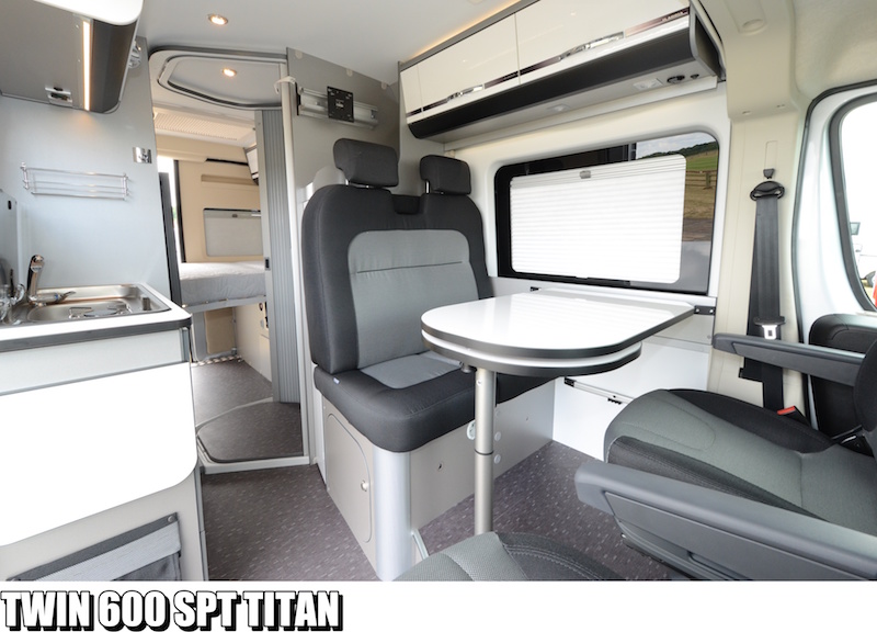 Adria maintient la version Titan, disponible sur quatre modèles : 540 SPT, 600 SP, 600 SPT et le nouveau 640 SLX. Elle se distingue par ses ambiances plus automobiles, de gris et de blanc. (+1500 €)
