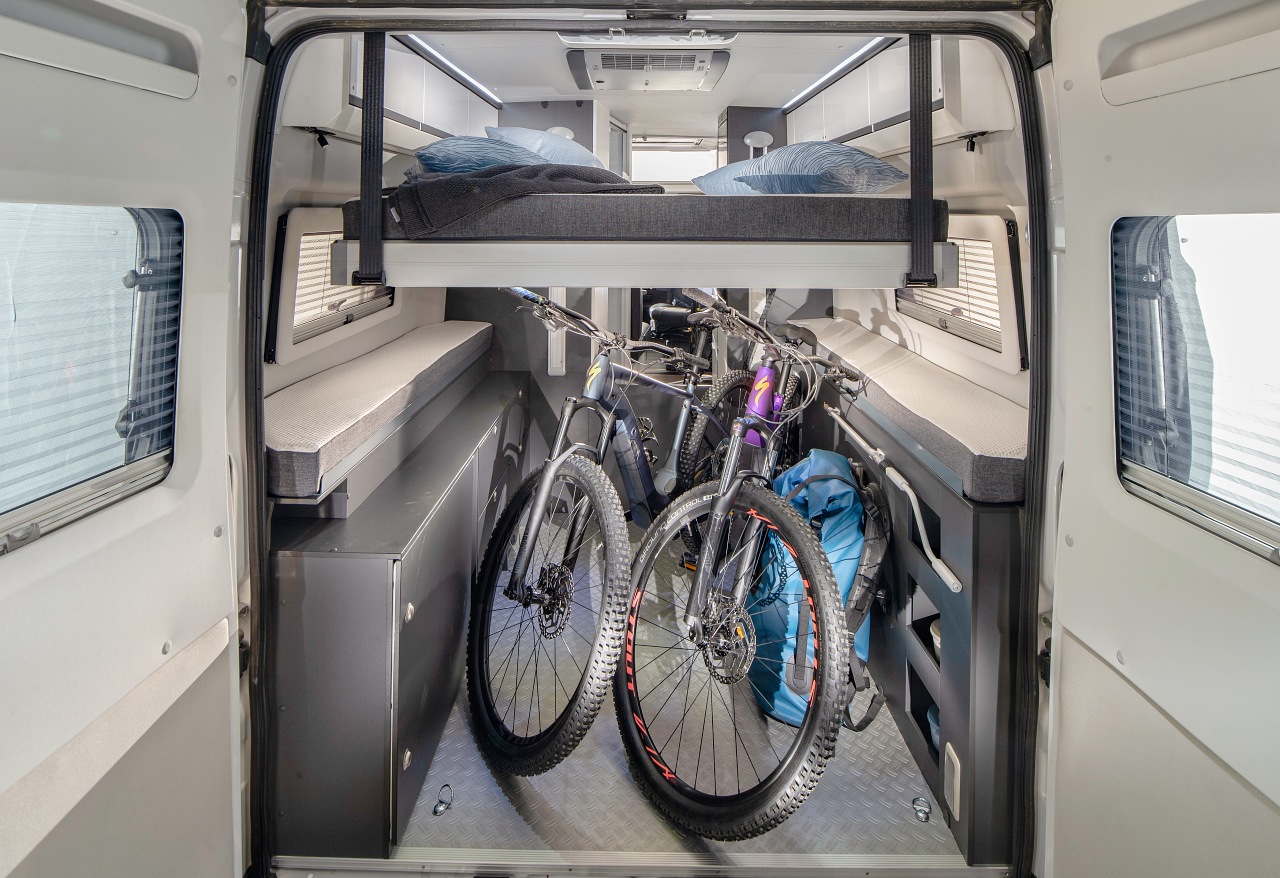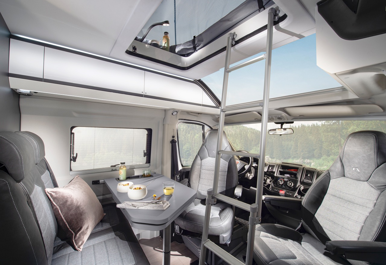 Ce toit relevable se déploie pour l’instant sur l’unique Adria Supreme 640 SGX , un fourgon des temps modernes, souffrant pourtant d’un manque de couchages : 2 places de série + 1 lit d’appoint en option… Un véritable crève coeur pour les familles et les sportifs en mal de rangements. Avec cette chambre haute, l’horizon se dégage.