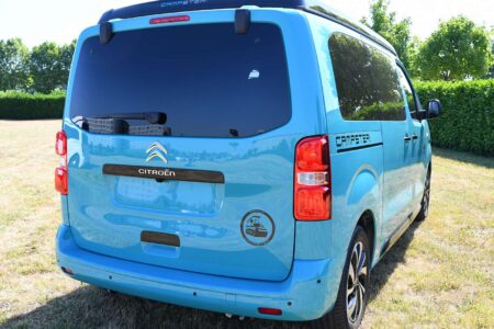Clin d’œil à la couleur de sa carrosserie adoptée lors de son lancement en 2016, le Campster retrouve le coloris Blue Lagoon originel, mais associé en 2020 à la couleur noire : celle-ci recouvre le toit relevable, les coques de rétroviseurs, les poignées et les baguettes latérales. Baptisée Campster Cult, comptez 1.800 € à ajouter au prix de base (43.899 € sur SpaceTourer 120 ch), pour bénéficier de cette édition spéciale – et étincelante – du Campster.