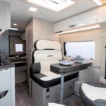 Un agencement simple et efficace que Roller Team propose ici en version enrichie. Aux prestations déjà importantes comprises dans la finition d’accès White Edition (stores plissés en cabine, moustiquaire de porte-cellule, baies sur porte arrière, marchepied électrique, chauffage gasoil 4000W, etc.) s’ajoutent la motorisation Fiat 140Ch, un panneau solaire 120W sur le toit et un store extérieur de 3,75m.
