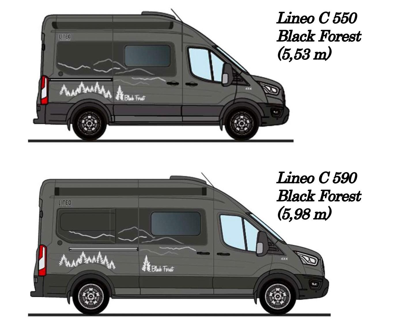 L’électronique gère la répartition du couple qui pourra s’équilibrer, en cas de contraintes ultimes, entre les deux essieux (50-50). En revanche, pas de blocage de différentiel, ni de boite courte. Cette déclinaison Black Forest ne modifie en rien les dimensions extérieures des modèles Lineo C 550 et 590. Seule la charge utile sera légèrement affectée.