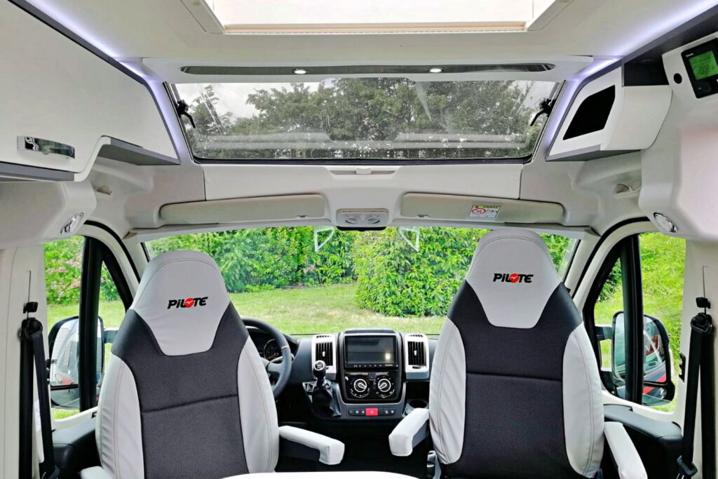 Dans la foulée de nombreuses marques ayant adopté cette solution, Pilote a présenté sa nouvelle découpe de cabine en début d’année, au salon CMT de Stuttgart. Évidée du traditionnel pavillon de rangement, la cabine intégrale agrandit considérablement le volume intérieur. La sensation d’espace est garantie, et la probabilité de se cogner la tête, en passant du salon au siège conducteur, réduite à zéro.