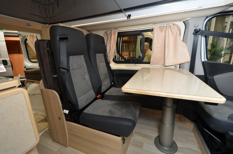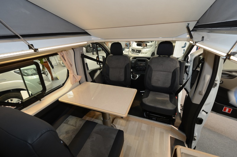 Campérêxe expose au salon du Bourget, en avant-première, le remarquable Mirande S, un aménagement quatre places (CG et nuit) développé sur le nouveau Renault Trafic L1H1 (4,99 m), contrairement à la précédente génération du Mirande qui était sur un Trafic L2H1 (5,19m).