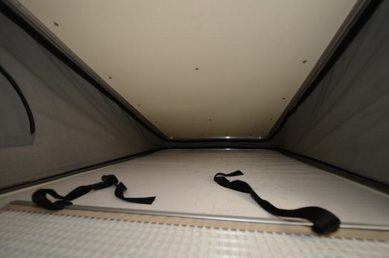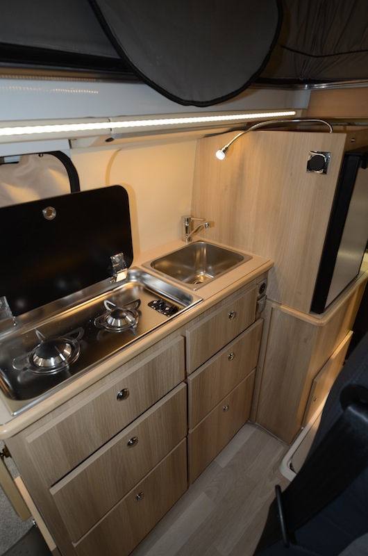 L’autre grande surprise, c’est la hauteur contenue du Mirande S qui culmine à seulement 2 m, malgré le toit relevable et la taille supérieure du nouveau Renault Trafic qui a donné du fil à retordre aux aménageurs. Pour en arriver là, Campérêve a dû revoir l’ensemble des dispositifs d’accrochage du toit relevable, fixés non plus sur la carrosserie mais sur un berceau polyester qui ceinture la découpe du pavillon.