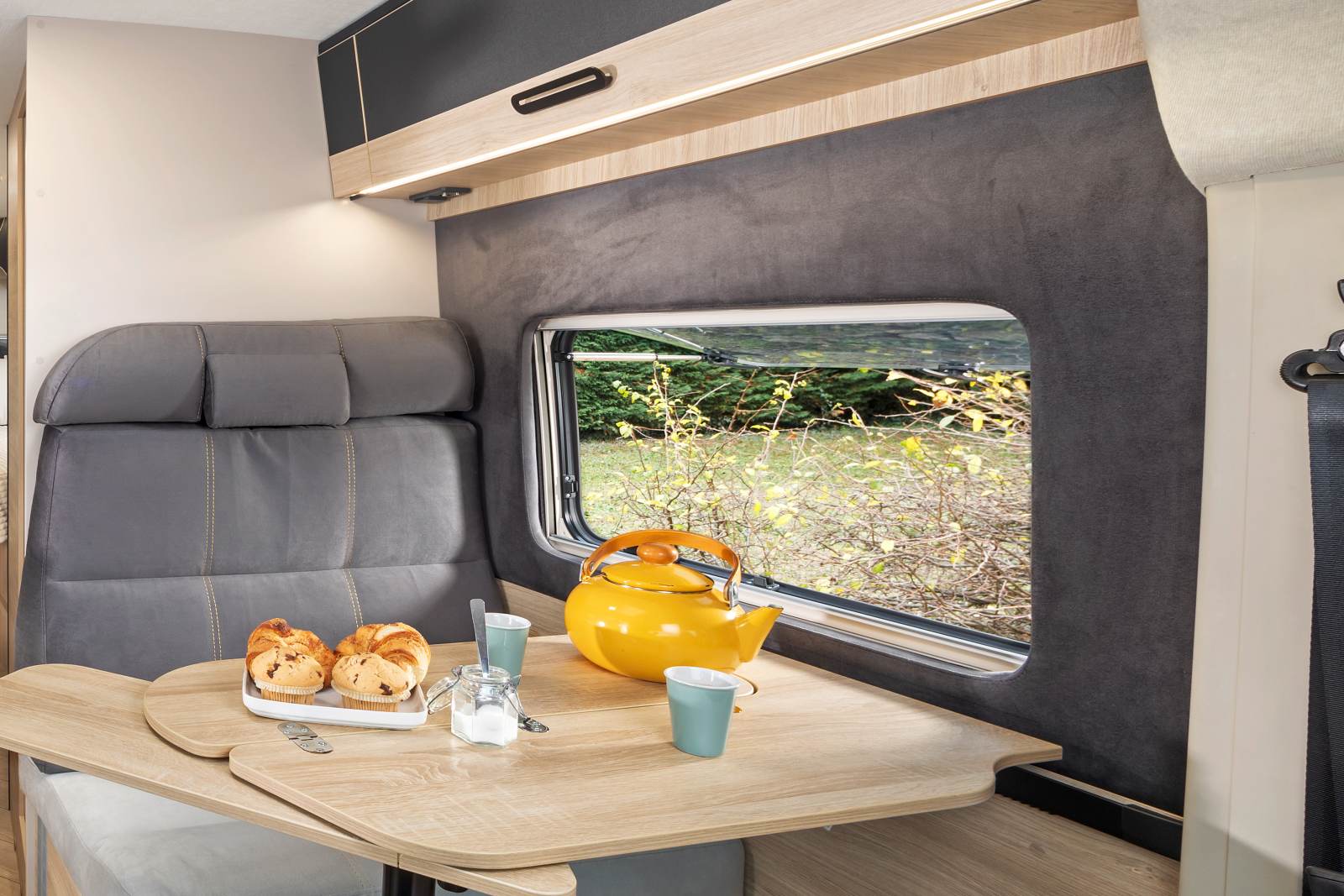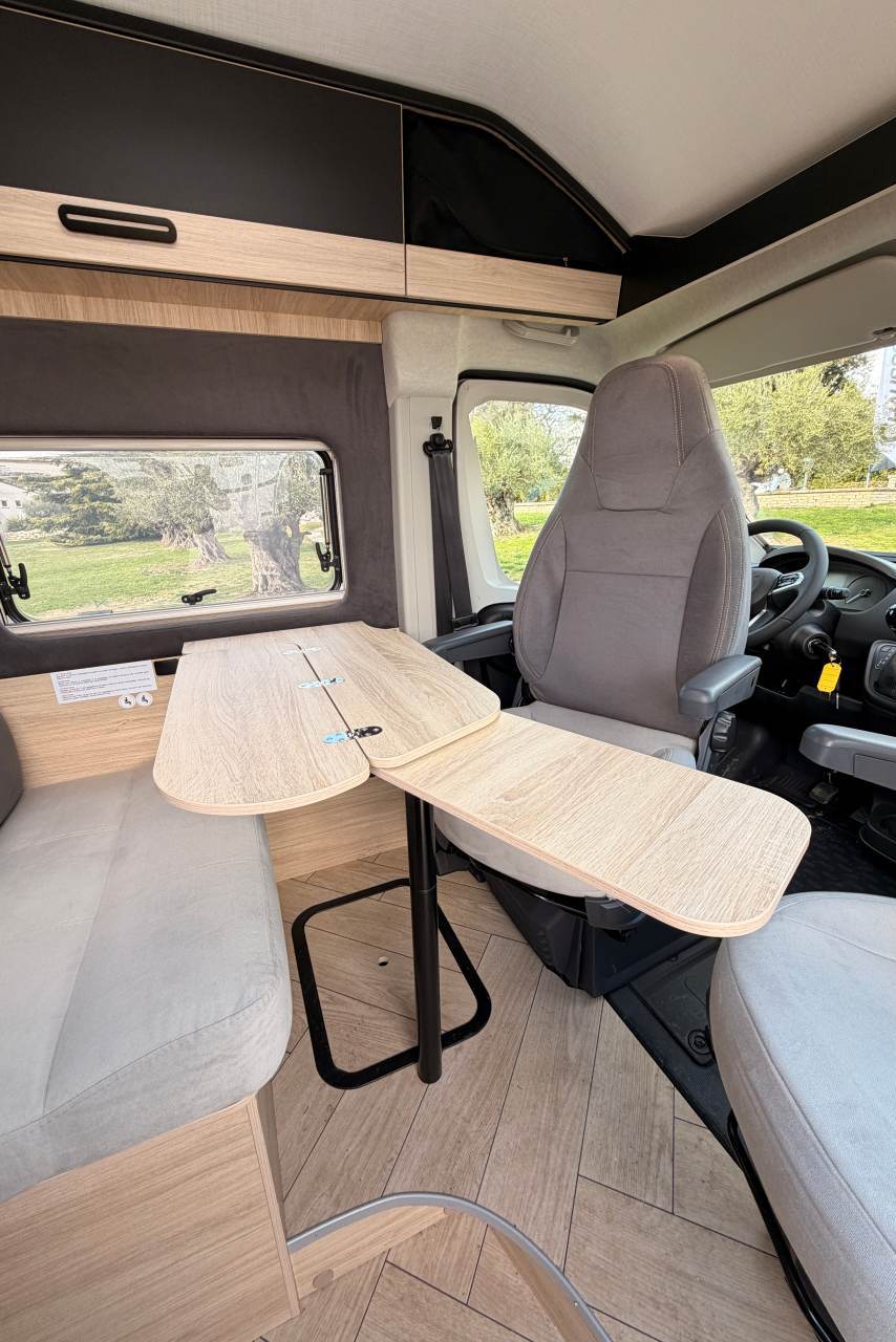 • Équipements : Baies arrière ouvrantes avec enjoliveur de baie, Batterie Lithium 100 Ah, Chauffage utilisable en roulant, Peinture de carrosserie « Iron Gray », Climatisation manuelle de cabine, Double airbag, ESP, Eco pack Citroën : Stop&Start, alternateur intelligent, pompe à carburant à gestion électronique, Extension table dinette, Fenêtres double-vitrage avec combiné, stores moustiquaire, Feux antibrouillard, Fix and go, Hill descent control, Housses de sièges cabine assorties à ambiance cellule, Isolation renforcée « VPS », Jantes alliage 16′ noires ou diamantées (BVA), double lanterneau, Marchepied électrique, Maxi cab, Pare-chocs avant peint, Penderie, Pneus 4 saisons