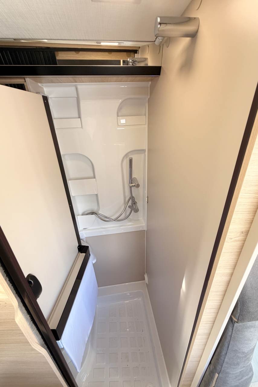 Autre innovation remarquée et appréciée, c’est la suppression du cabinet de toilette simple au profit du système Vario à cloison pivotante, déjà largement utilisé sur les profilés compacts Challenger… mais pas sur les fourgons Challenger.