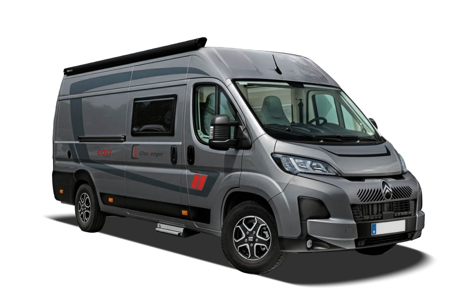 Challenger Cosy Edition. Un véhicule premium à 60 990€ sur motorisation 140 ch. + BVA. Le véhicule bénéficie de série des jantes 16 » et des pneus 4 saisons, en plus du store extérieure et des fenêtres affleurantes Dometic S7.