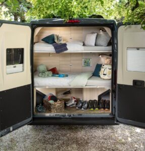 S’il n’est pas le premier à proposer 5 places route pour autant de places nuit, le F & S Line se distingue par son caractère modulable. Dit autrement, vous avez ici la possibilité de retirer les lits superposés arrière pour profiter d’un garage XXL, se déployant sur toute la largeur et la hauteur. Idéal pour transporter des vélos, une petite moto ou plus globalement, du matériel encombrant. Si vous souhaitez conserver un quatrième couchage, tout en ayant le bénéfice de la grande soute, il vous suffit de retirer uniquement le couchage du bas.