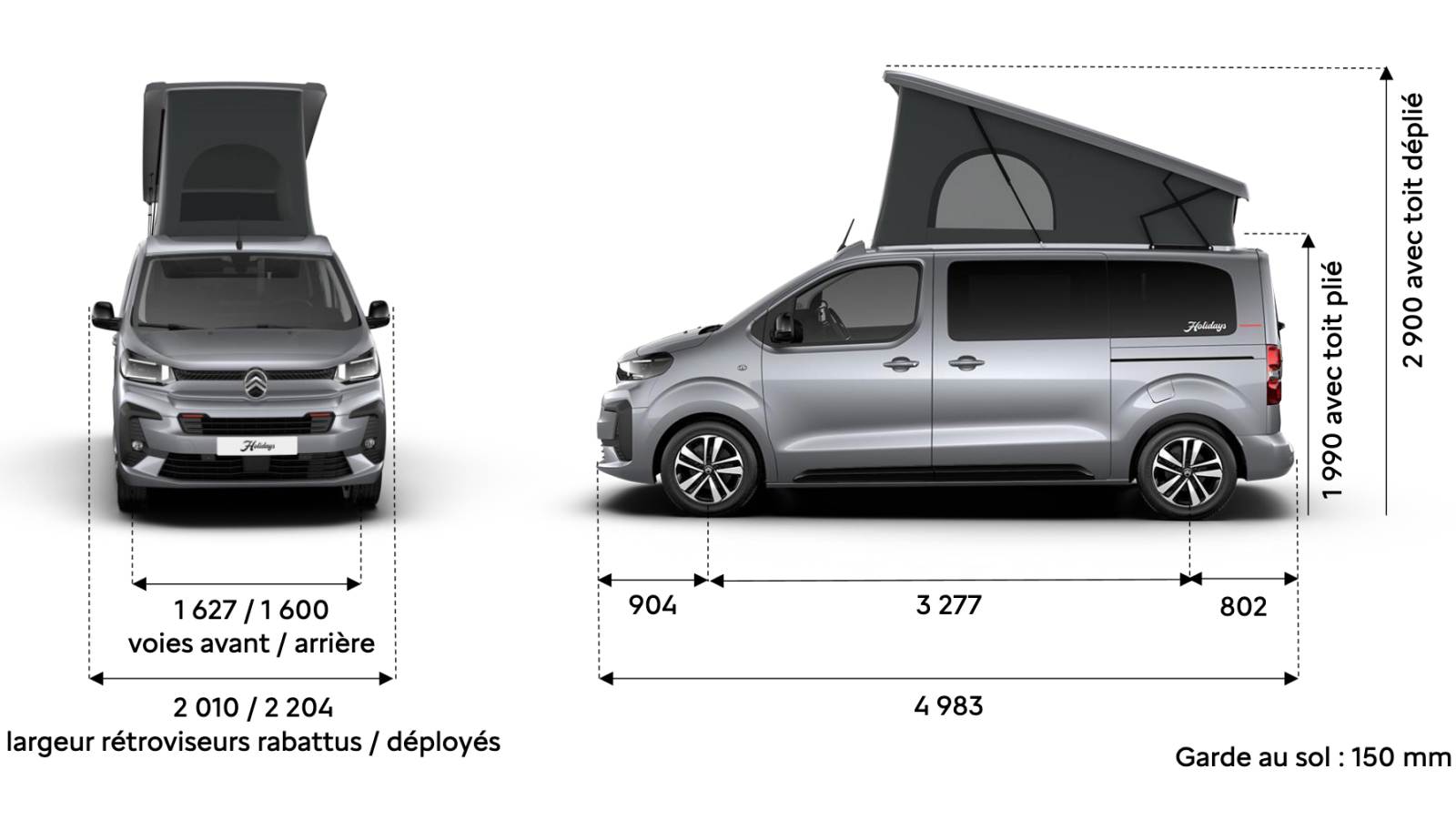 Pensé comme une solution clé en main pour partir en escapades, le Holidays se distingue par sa facilité d’utilisation, son équipement de série complet et son aménagement fonctionnel. Il s’inscrit dans une tendance forte du marché des véhicules pluriels. Sa banquette entièrement amovible en fait le compagnon idéal des sportifs qui peuvent embarquer tout leur matériel et dormir dans le toit relevable.