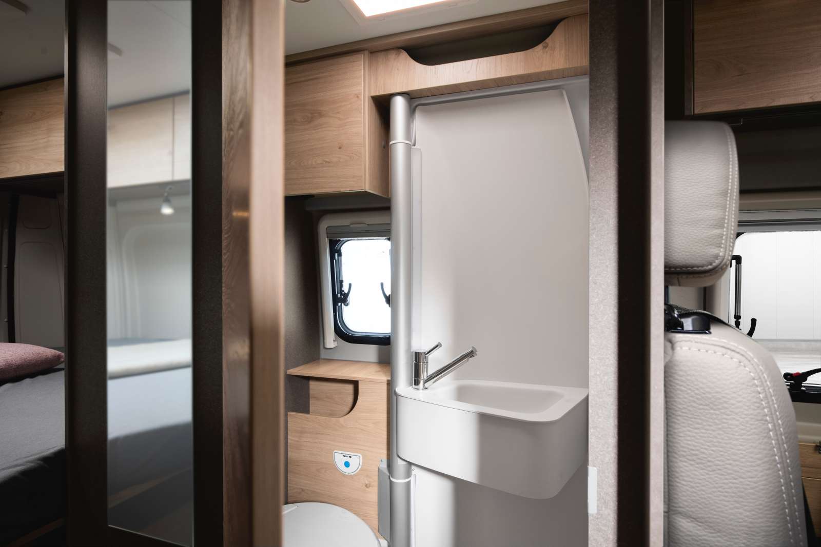 Plébiscitée par les utilisateurs, la salle d’eau VARIO est reprise sur le Globetrail ACTIVE PLUS. Bien adapté aux contraintes de place, le système de paroi pivotante permet de passer rapidement d’un cabinet de toilette compact à une vraie cabine de douche.