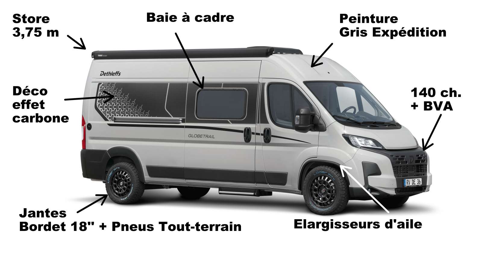 Le Globetrail ACTIVE PLUS reçoit également des baies à cadre, améliorant isolation et sécurité, des prises USB réparties dans l’habitacle, ainsi que de nombreux rangements. L’ensemble repose sur des matériaux et des assemblages de bonne facture, dans la continuité du standard Dethleffs. La garantie étanchéité grimpe à 10 ans, sous réserve des contrôles annuels.