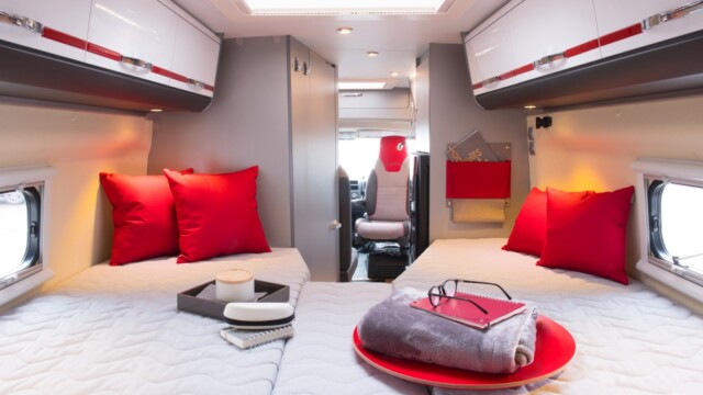Pour le reste, comme nous l’écrivions, le Van 63 L est très proche du 63 LX. On retrouve à l’identique des lits jumeaux qui promettent confort et accès facilité pour chacun des occupants. Il peuvent être réunis par un coussin intercalaire pour former un grand couchage.