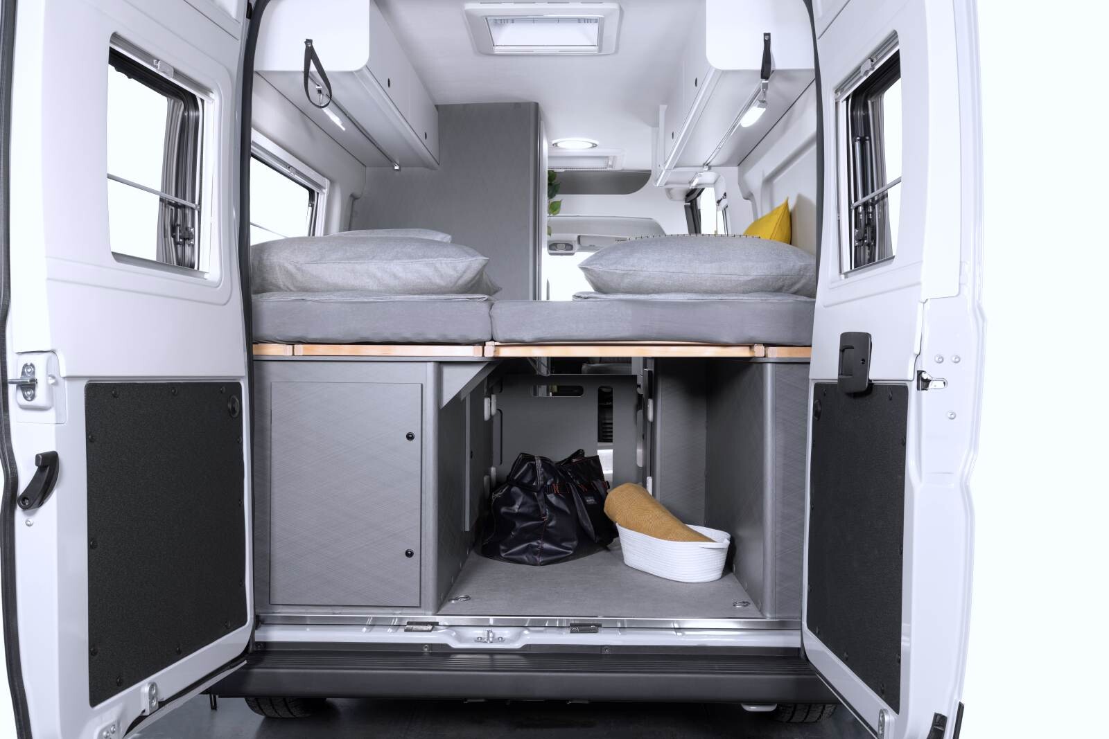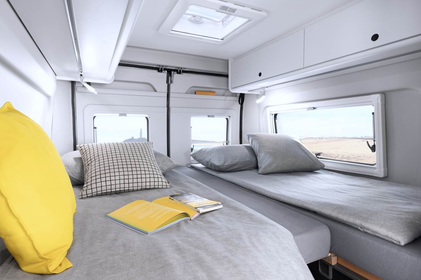 Si les lits jumeaux sont très majoritairement aménagés sur des fourgons de 6,36 m, les retrouver dans un format compact séduit de plus en plus d’utilisateurs. Les marques comme Carado (CV 602), Corigon (CV 60 S), Dethleffs (Globetrail 600 ER), Hymer (Free 602), Karmann Mobil (Davis 600/610), mais encore Knaus (BoxLife 600 ME), Malibu (Compact 600 LE), ou Weinsberg (CaraBus 600 ME) ont toutes adopté des lits jumeaux sur des Fiat Ducato de 5,99 m.
