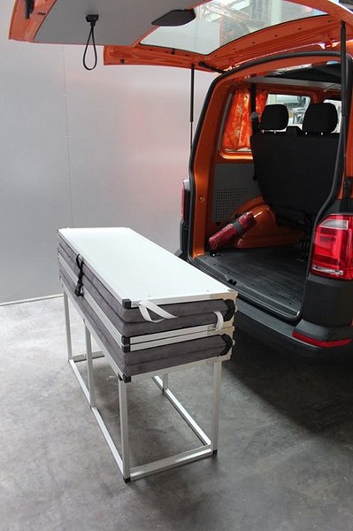 Œuvre du réputé aménageur allemand Martin Hemp, le Flow Camper offre cinq places carte grise et jusqu’à cinq places nuit grâce à son lit de mezzanine dans le toit relevable et son lit bas pliable.