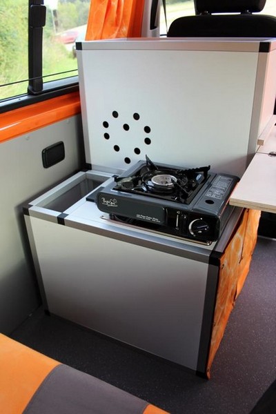 L’équipement principal est contenu dans trois modules compacts et amovibles : le réfrigérateur à compression 25L. ; l’évier, le réservoir d’eau douce de 12L. et le réchaud ; et la poubelle. Sont également inclus de série le plateau de table pliant, le chauffage, l’éclairage LED ou encore les prises électriques et ports USB. Au final, si les prestations (fonctionnalités, rangements, autonomie) se révèlent assez sommaires, le modèle n’en est que plus modulable et polyvalent.