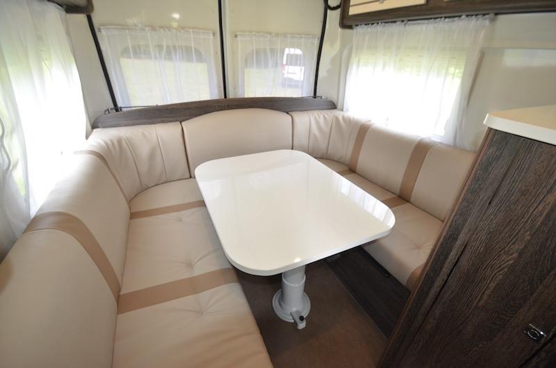 Le Rando Camp appartient à la gamme supérieure Séjour. La base est un Fiat Ducato L2H2, 4 places carte-grise et 3 places couchage. Le principal avantage de ce modèle est sa relative compacité avec une longueur totale de 5.41 m et une hauteur de 2.57 m. Le plan de ce fourgon s’organise autour d’une dînette simple transformable à l’avant et d’un grand lit double transversal à l’arrière. Le centre du fourgon est occupé, d’une part, par la cuisine (plaque deux feux, réfrigérateur à compression 90 litres) et, d’autre part, par la salle de bain comprenant lavabo, WC pivotant et douche.