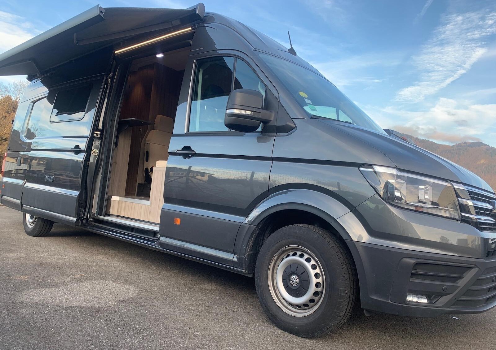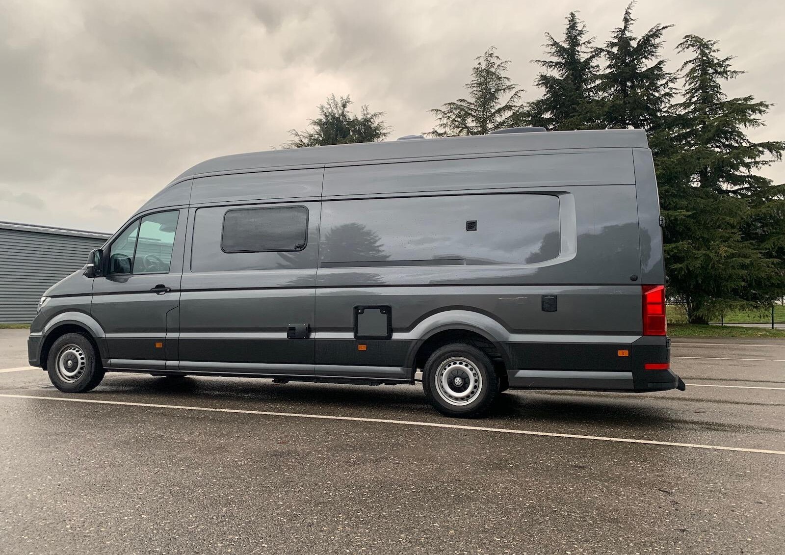 Ce VW Crafter extra-long (7,39 m) est par ailleurs très bien équipé pour pouvoir voyager en toute autonomie : 2 batteries lithium, panneaux solaires, puissant convertisseur, chauffage au gasoil, climatisation, 200L d’eau, etc.