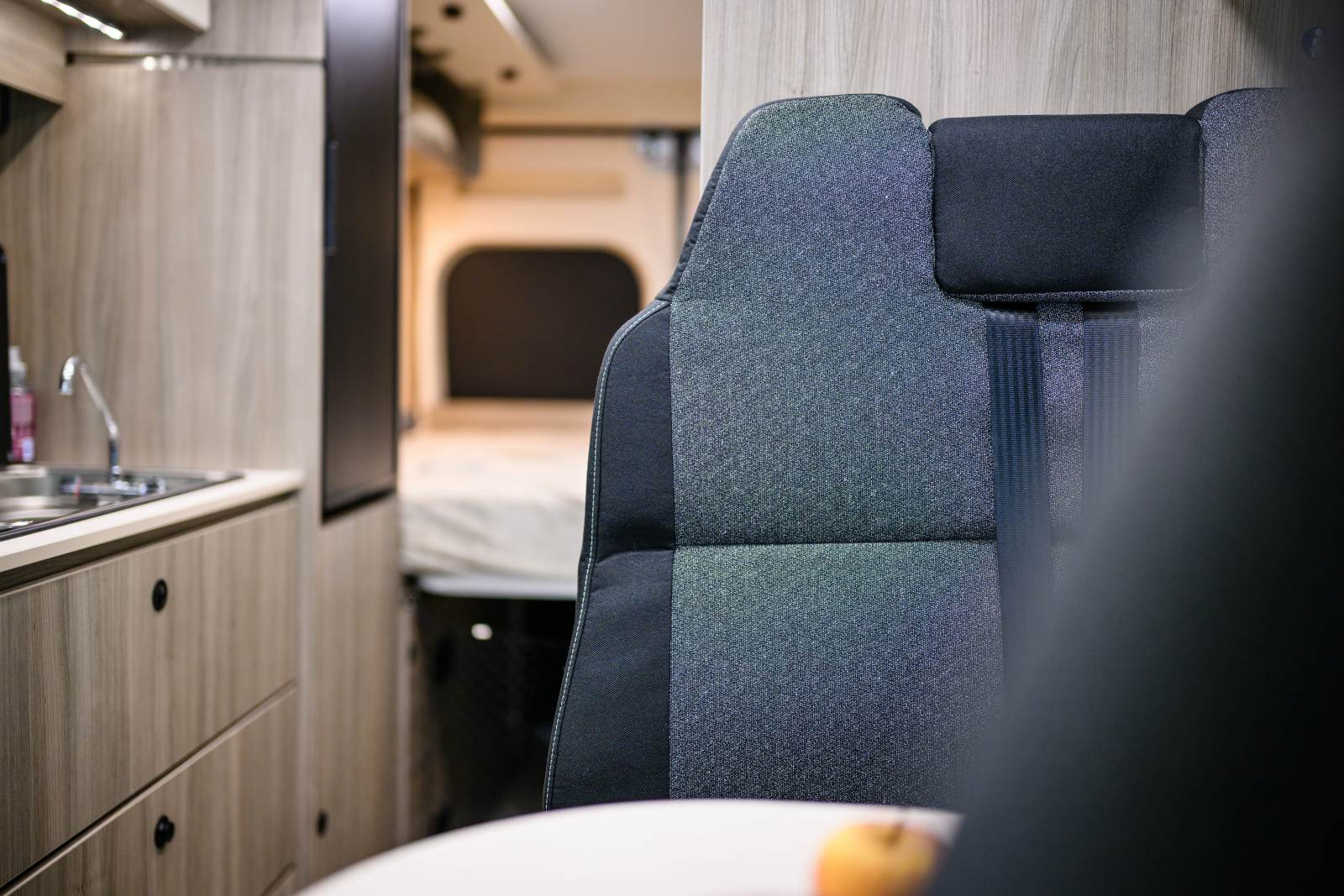 S’il y a un point commun indéniable entre le R602 et ce 602A en série limitée de printemps, c’est clairement la qualité de fabrication. A l’usine Périgord VDL où les camper vans Randger sont fabriqués, le mobilier est conçu avec passion et robustesse. Les ambiances intérieures du 602A sont soignées : sol imitation parquet, meubles bois Malaga avec façades blanches, sellerie Twill bicolore gris et noir. Autre expertise incontournable signée Randger, l’isolation optimale : plancher sandwich, laine de verre, polystyrène et couches aluminisées. Rien n’est laissé aux hasard pour éviter tout pont thermique et offrir un confort toutes saisons.