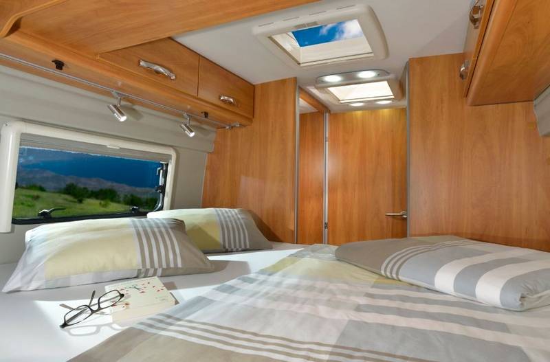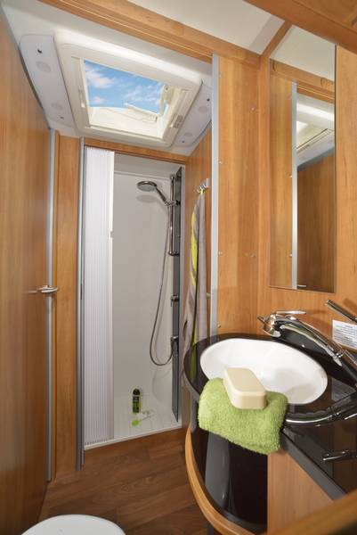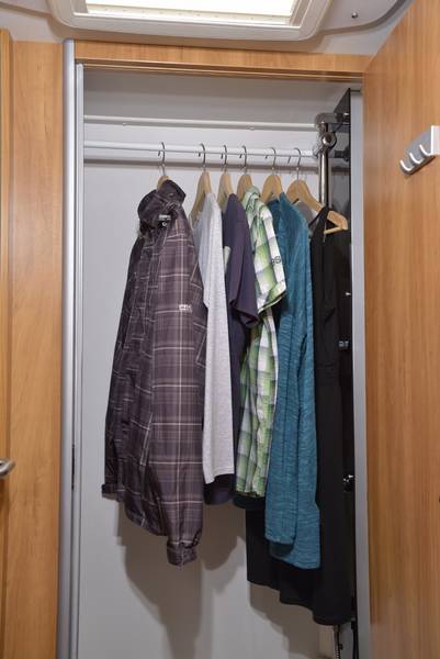 Sans faire preuve d’autant d’ingéniosité, le Globestar 640D se montre néanmoins convaincant à l’usage. Pas de penderie mobile ici dans la douche, mais une tringle qui permettra de suspendre vestes, chemises et autres blousons. A double usage, la porte du compartiment douche pourra également servir à séparer le coin nuit et sa salle d’eau attenante de la pièce à vivre. A l’arrière, le modèle Globecar opte sans surprise pour un lit transversal bien dimensionné (196 x 151/146cm).