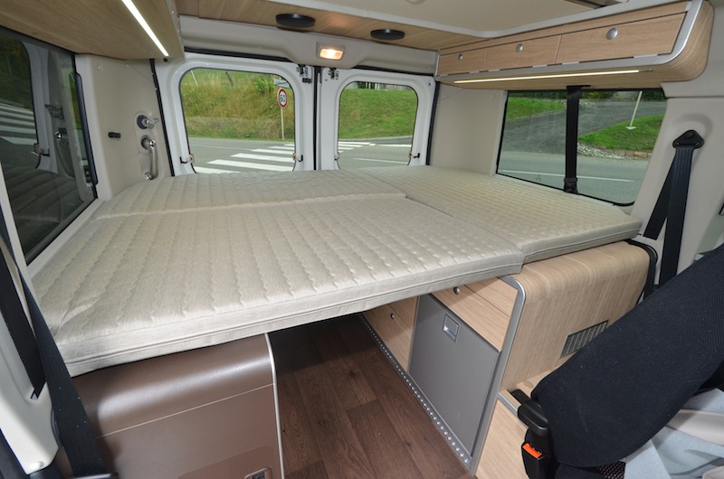 L’espace de chargement devient encore plus modulable sur les versions 2015 du CapeTown et du Sydney, deux modèles LIFE, qui seront équipés, à la demande du client, et sans supplément tarifaire, d’un meuble amovible. La manipulation exige d’être deux, mais on libère une bonne partie de la zone à l’arrière. Faire le choix de la modularité, c’est aussi faire l’impasse sur le réfrigérateur de 46 l, remplacé par une glacière à compression de 42 l dont l’ouverture s’effectue par le dessus et non de manière frontale. Ce qui permet de conserver efficacement le froid au fond de la cuve.