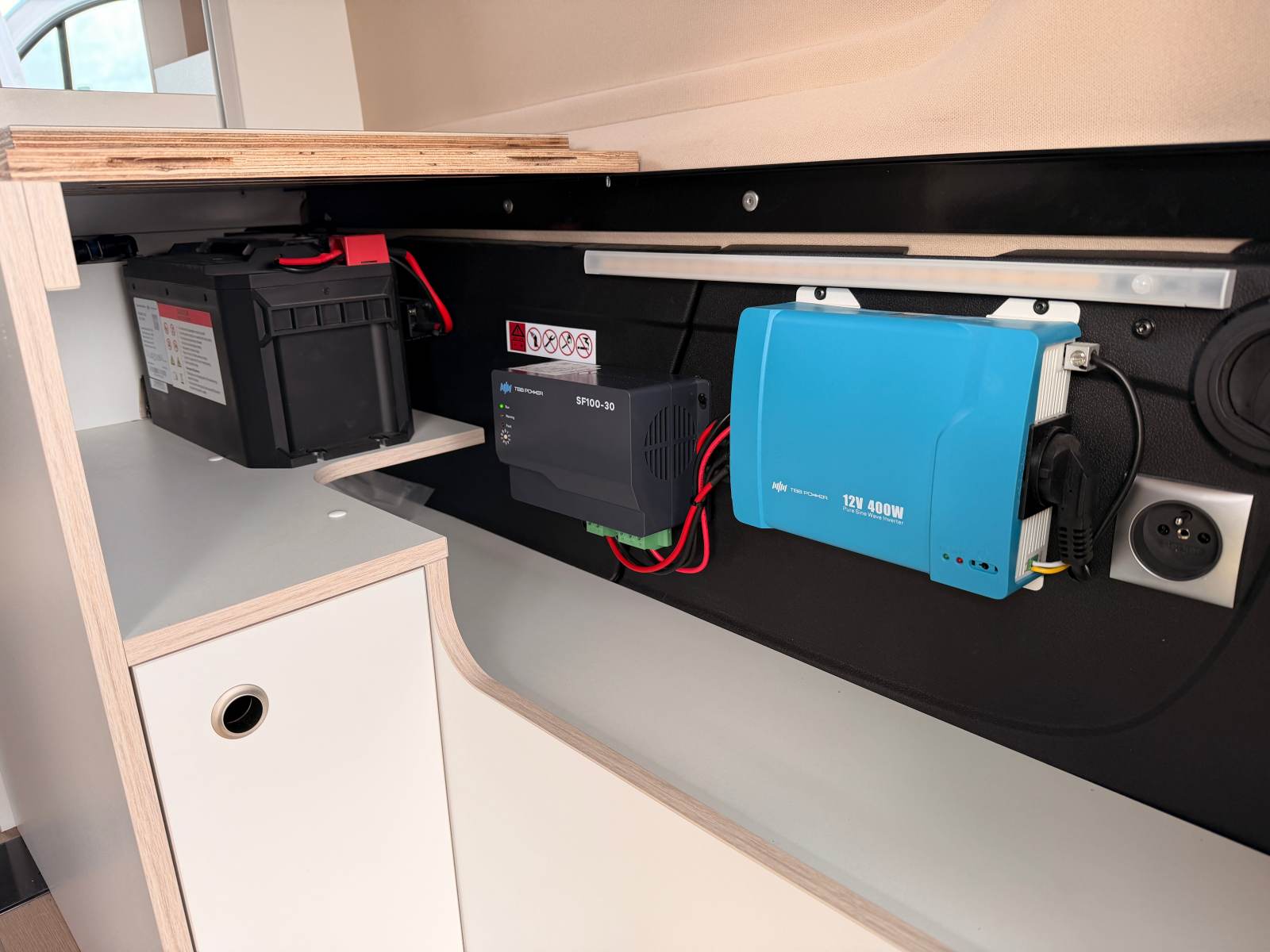 - Équipements de série : Radar de recul, Caméra de recul, Pack View (Feux de brouillard avant, essuie-glace automatique), Apple Carplay et Android Auto, Régulateur et limiteur de vitesse, WC Porta Potti, Douchette extérieure, Prises intérieures 220 V et prise USB, Réglette leds avec variateurs et spot liseuses, Batterie Lithium 100 Ah, Convertisseur, Panneau solaire 210 W, Tableau de contrôle connecté via une application sur le smartphone, Chauffage Webasto avec kit altitude, Rideaux isothermes, Rideaux de séparation conducteur + aménagement, Auvent arrière.