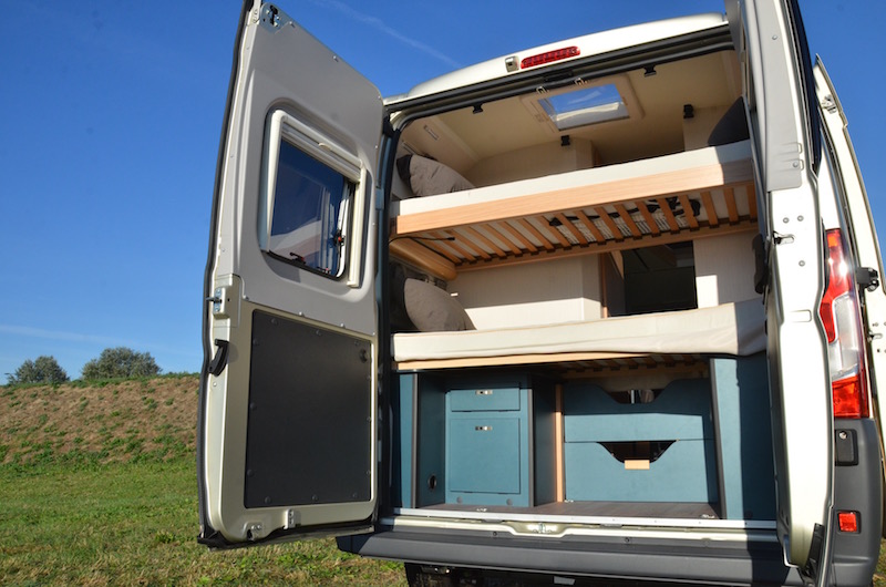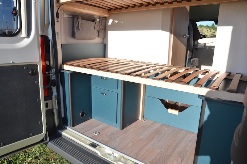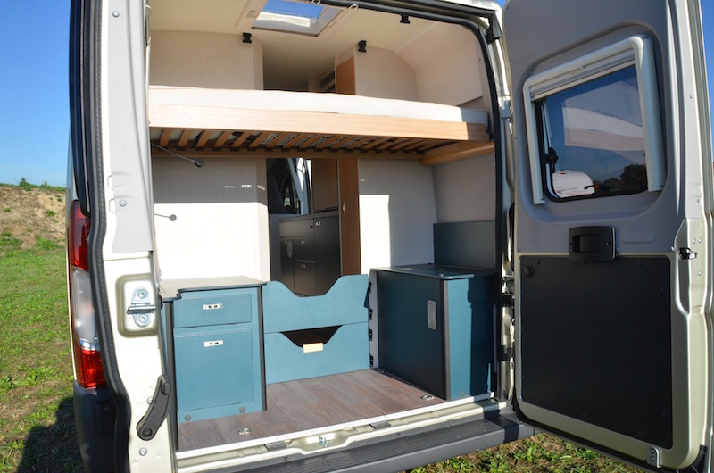 On vous l’avait dit, ce petit camping-car ne fait pas les choses comme les autres et mérite un coup d’œil appuyé. Bien sûr, il faut en passer par la case des options et sélectionner les meilleurs équipements. Les packs Fiat et Life semblent incontournables, car ils donnent accès à la climatisation cabine, au marchepied électrique (70cm), au câblage des installations solaire et satellite et aux rétroviseurs électriques.