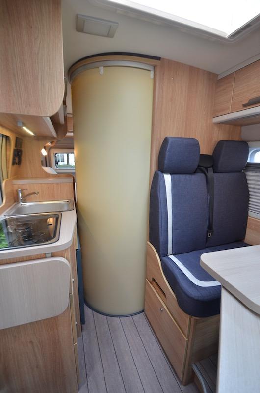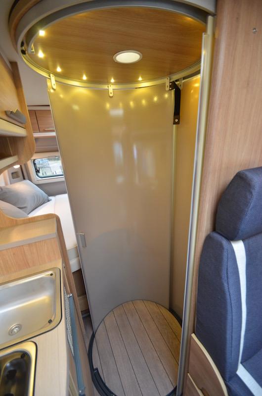 On peut toujours discuter de la pertinence de la salle d’eau extensible, mais pas du confort qu’elle procure. Au-delà du grand volume de douche, vous profitez d’un espace suffisant pour les jambes lorsque vous êtes assis sur les WC. Ce n’est pas toujours le cas ailleurs !