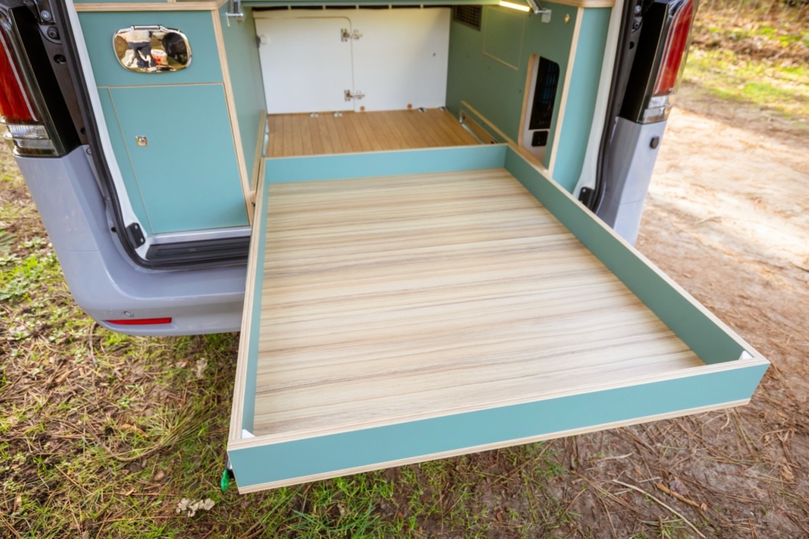 Vanaho est construit sur un Mercedes Vito long (5,14 m). Un porteur réputé pour sa fiabilité et son agrément de conduite. Malgré l’installation d’un toit relevable SCA de série, offrant un couchage double à l’étage, le van reste sous les 2 mètres de haut. Ce qui lui ouvre l’accès à la plupart des parkings souterrains et à portique.