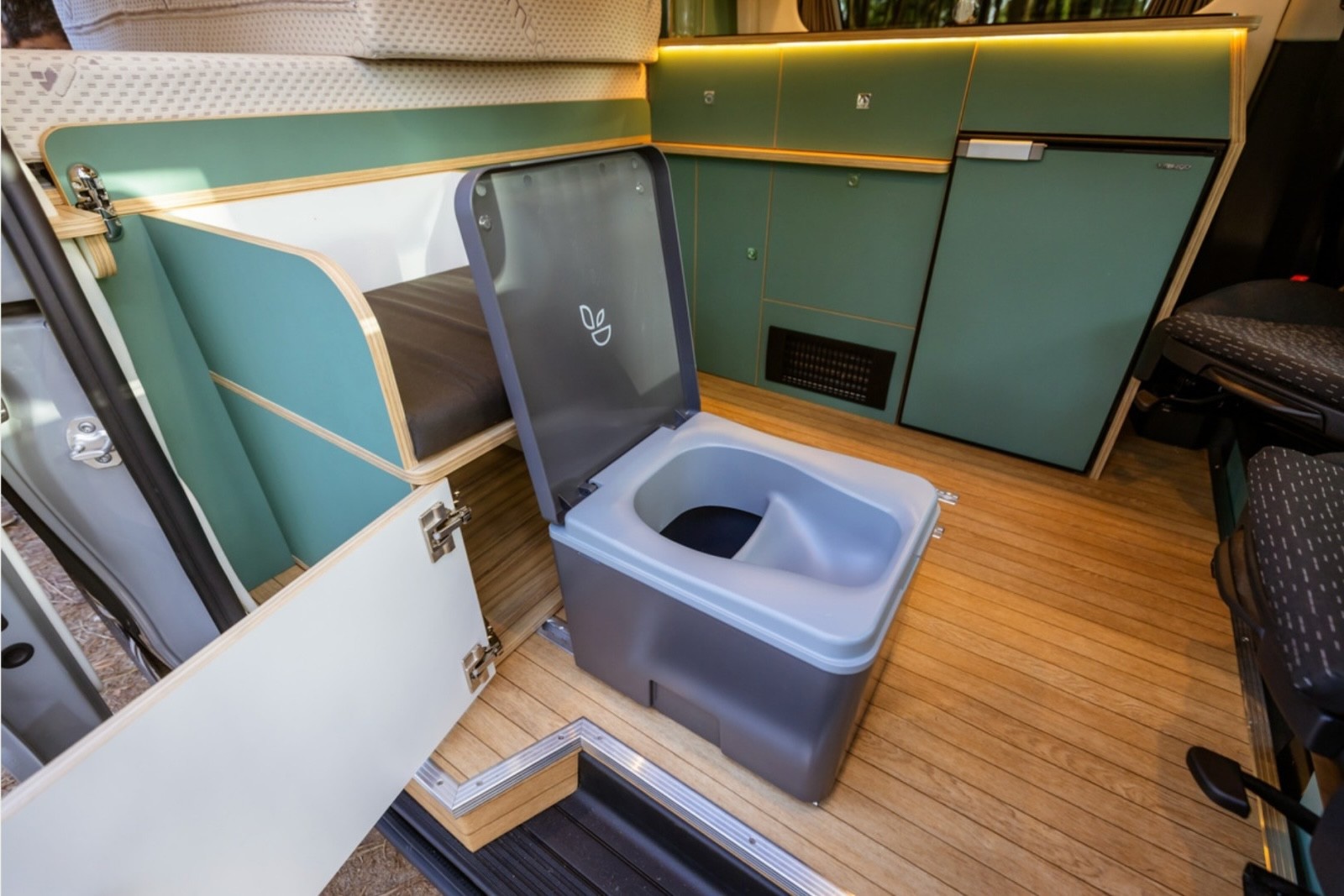 - Réserves d’eau propre de 70 L (jusqu’à 100 L dans la version 2 places) et réserve d’eaux usées de 35 L