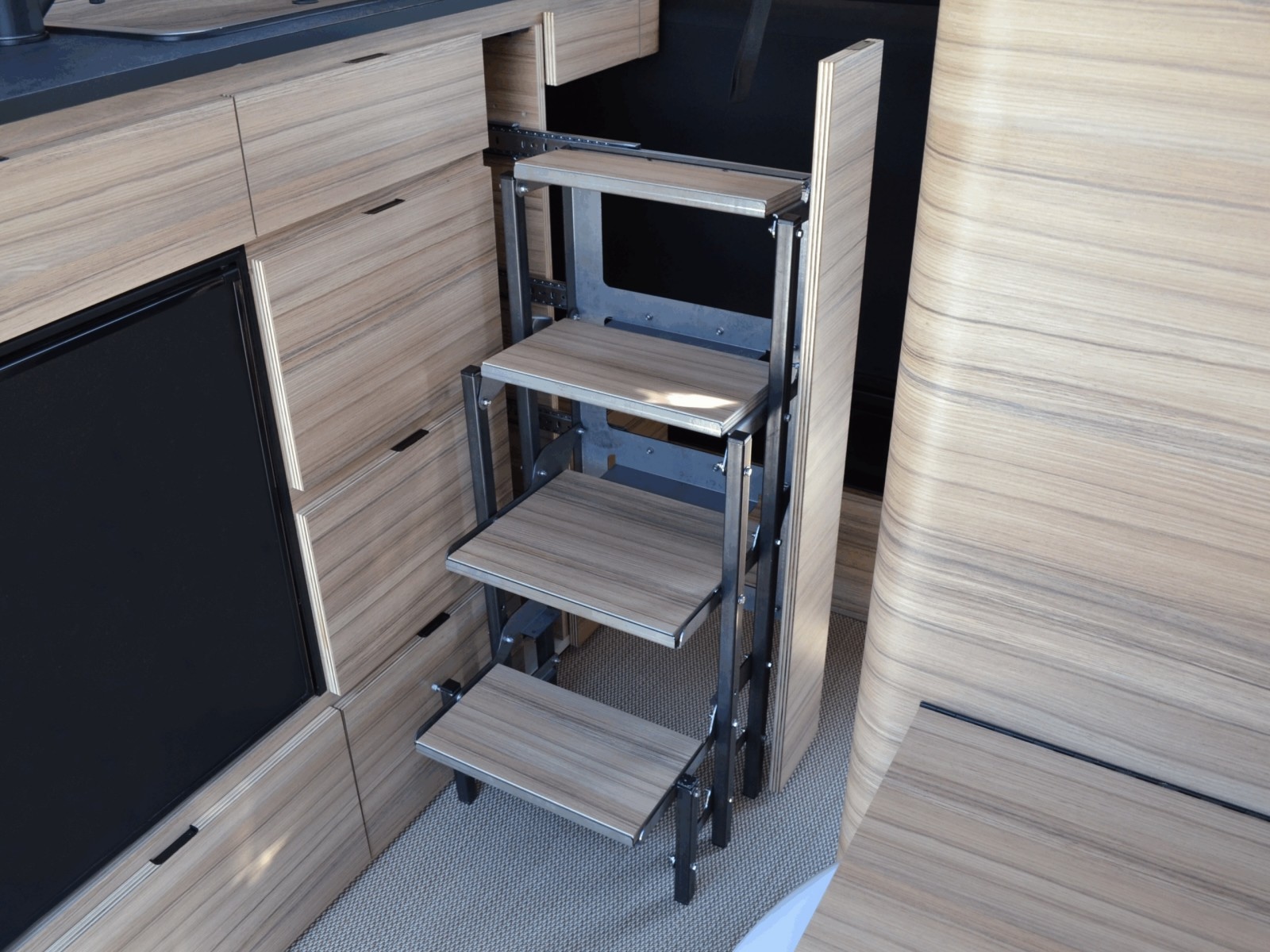 Ici en vidéo, l’Escapade Évasion dans sa version avec escalier, filmé lors du dernier Camper Van Week-End de Chantilly.