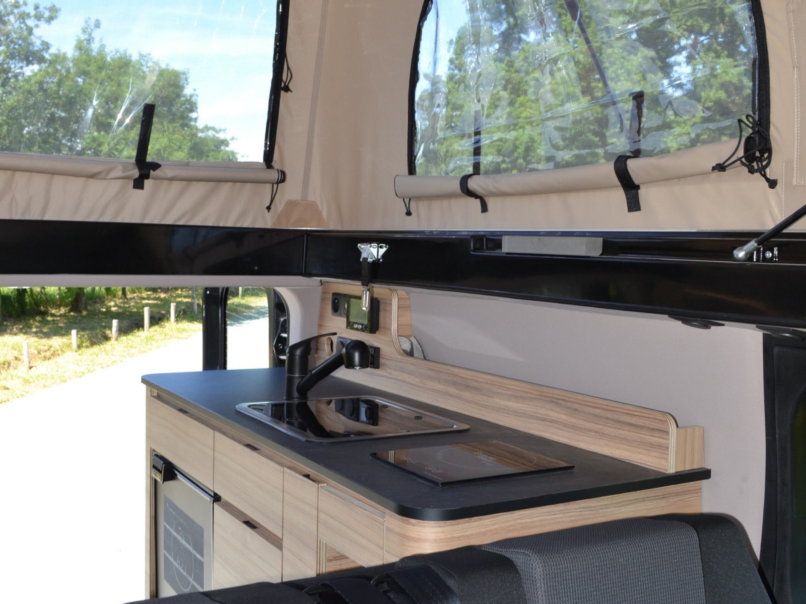 Aussi, et c’est peut-être le plus important, l’Escapade Évasion est développé sur le Renault Trafic long, quand le Ford Nugget utilise comme base le Transit Custom court ou long. En résulte un prix de départ plus avantageux pour l’Escapade Évasion : à partir de 55 920 € en finition Confort + (130 ch / BVM), contre 75 318 € pour le Ford Nugget L2 en finition Titanium (150 ch / BVM). Comme pour l’ensemble de sa gamme, MCC pousse la personnalisation loin, avec un large choix de coloris de mobilier (près de 400 teintes) et de toiles de toit (9 possibilités).