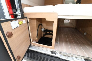 Mais le constructeur offre la possibilité de personnaliser le chauffage de ses véhicules, avec de nombreuses solutions disponibles en option : puissance nominale 4000 W ou 6000 W, Gaz, Diesel ou mixte Electrique. En raison de cette modularité, les Menfys Vans conservent un coffre pour 2 bonbonnes de gaz à l’arrière, mais convertible en espace de rangement si besoin.