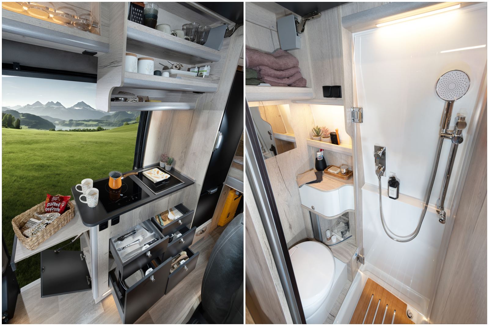 Répondant à une grande tendance de la vanlife, Mega Mobil propose ses aménagements sans installation au gaz, pour une meilleure autonomie tout électrique, sûre et moderne. Cette innovation prend la forme d’une nouvelle option, l’Autonomy Pack (6.049 €), disponible sur Fiat, Man et Mercedes. Son contenu :