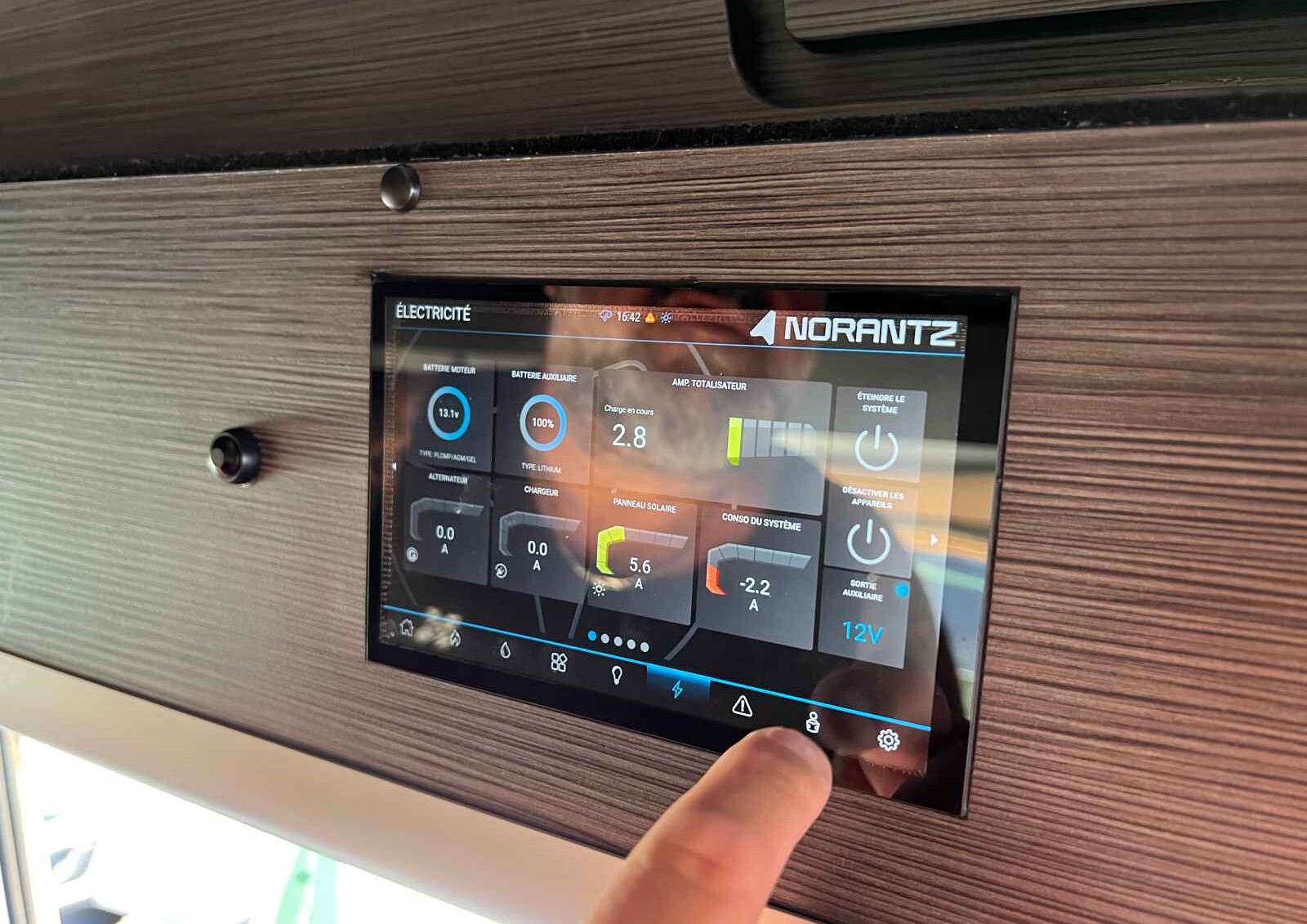 Et pour contrôler le tout, Norantz fait le choix d’un système de commandes innovant, développé en partenariat avec l’équipementier Arvikon. Depuis le panneau de contrôle, vous pilotez l’ensemble des appareils et gardez un œil sur l’ensemble des paramètres du véhicule.