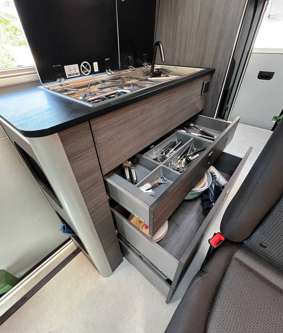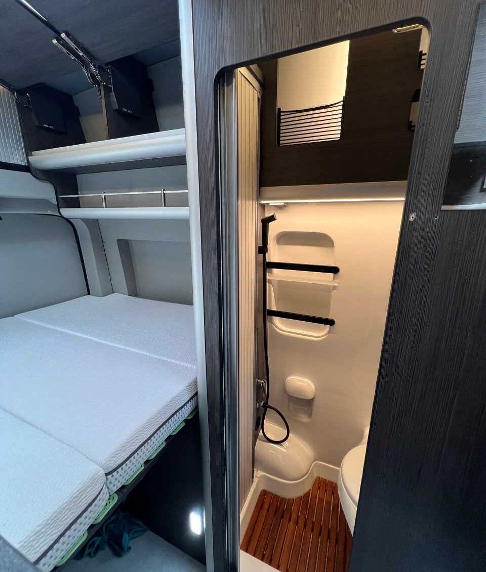 L’autonomie est au centre des préoccupations chez Norantz. C’est la raison pour laquelle le constructeur espagnol retient d’emblée une batterie lithium 300Ah avec un booster de charge 80 Ah (soit le double de la puissance généralement constatée). Et si vous préférez la plaque à induction au réchaud gaz, vous devrez ajouter une batterie auxiliaire (150 Ah) et remplacer le convertisseur 1000W de série par un 2000W. Ce n’est pas tout. Ajoutez encore une 4ème batterie (150 Ah) et portez à 600 Ah l’autonomie électrique !