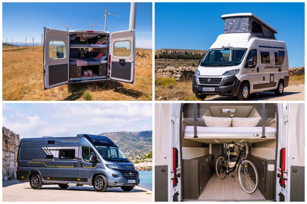 | Benivan B105 toit relevable | Fiat Ducato 3,5 t | 2,3 l 140 ch | 5,41 m | Transversal (+ lit de toit) | 48.000 € |