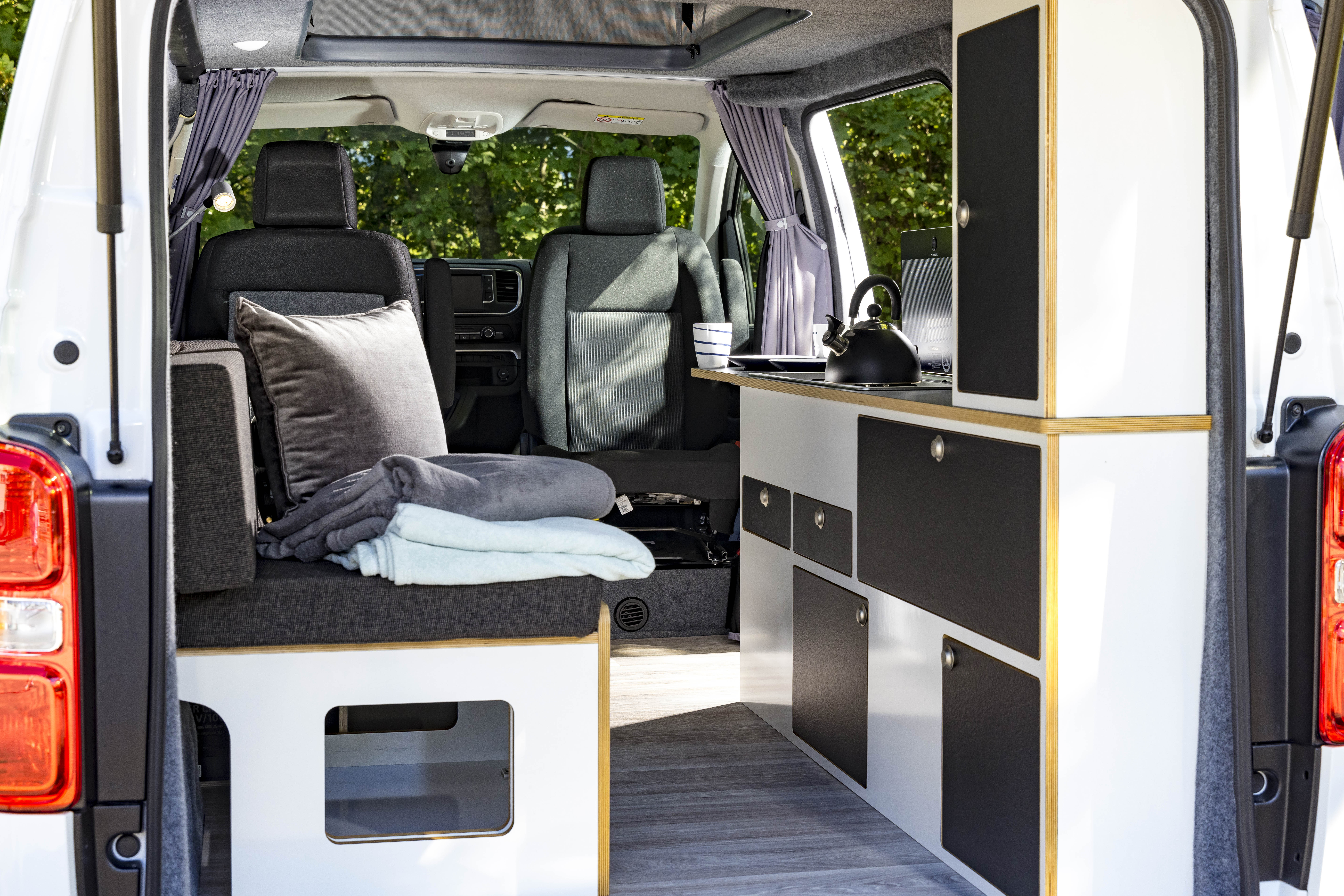 Avec la complicité d’Alpin Camper, un transformateur réputé en Allemagne, le constructeur Opel en apporte la preuve. L’Opel Vivaro se mue en véhicule de loisirs, dans deux versions : l’une à destination des couples et l’autre des familles. Dans ce dernier cas, la banquette face à la route fait toute la différence.