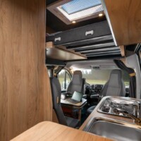 Sur les gammes Voyager, Pathfinder et Falcon, Globe-Traveller recarrosse aussi la partie avant du toit, qui culmine alors entre 2,93 m et 3 m de haut selon le véhicule. Cette rehausse de toit permet de générer une hauteur intérieure impressionnante : de 1,91 m à 2,05 m selon les zones et modèles. Toutes les gammes, y compris les Explorer sur base H3 (sans toit recarrossé donc), profitent d’un double-plancher isolant.