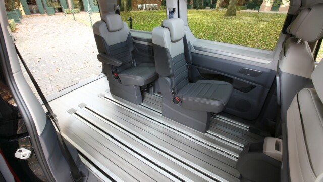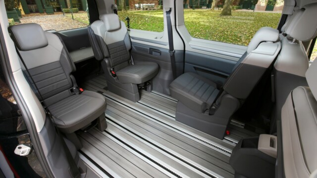 Conçu sur la Plateforme Modulaire Transversale (MQB), contrairement au VW Transporter, le Multivan s’appuie sur un tout nouveau plancher et un système de 5 sièges individuels et modulables à l’arrière (rang 2 et 3), en complément des fauteuils cabine (rang 1).