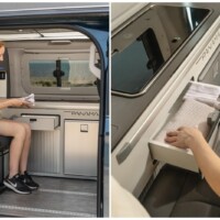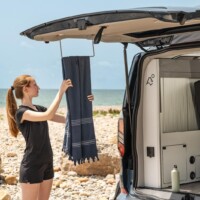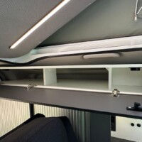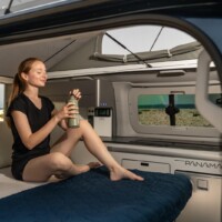 La collection de vans Panama 2026 hérite de nombreuses améliorations. La première d’entre elles concerne la généralisation du toit pop-up extra plat, fabriqué spécialement pour Panama et qui permet au van de se maintenir à 2 mètres de haut tout juste (toit fermé). Citons également le nouveau logement pour la table, intégré dans la contre-porte coulissante ; la bande d’éclairage intérieur et le bouton d’ouverture du hayon prévus à l’arrière ; les appuie-têtes brodés du logo Panama ; les liseuses orientables disposées au niveau du couchage supérieur ou encore la commande de chauffage repositionnée à l’avant afin d’être accessible même depuis le lit haut.