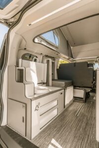 D’origine, les vans Panama sont fournis avec pléthore d’équipements côté porteur : station multimédia avec écran 13 pouces, volant cuir avec commandes au volant, climatisation automatique, feux et essuie-glaces automatiques, régulateur de vitesses, aide au maintien dans la voie, reconnaissance des panneaux de signalisation, caméra de recul, etc.