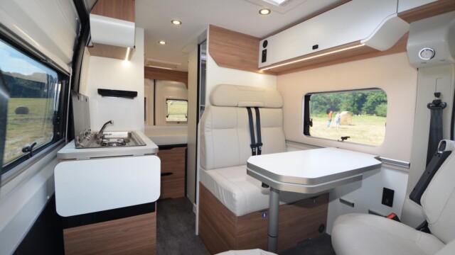 Dans le détail, le V600G est aussi retouché. L’étroite penderie intercalée entre le lit et le bloc sanitaire est supprimée. Ce qui profite directement au couchage, qui gagne en largeur pour atteindre 147 cm (+15 cm environ).