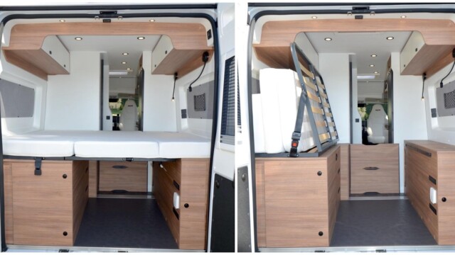 Pensé pour les baroudeurs, l’aménagement préserve une soute grand volume, capable d’embarquer deux vélos (en retirant une roue).